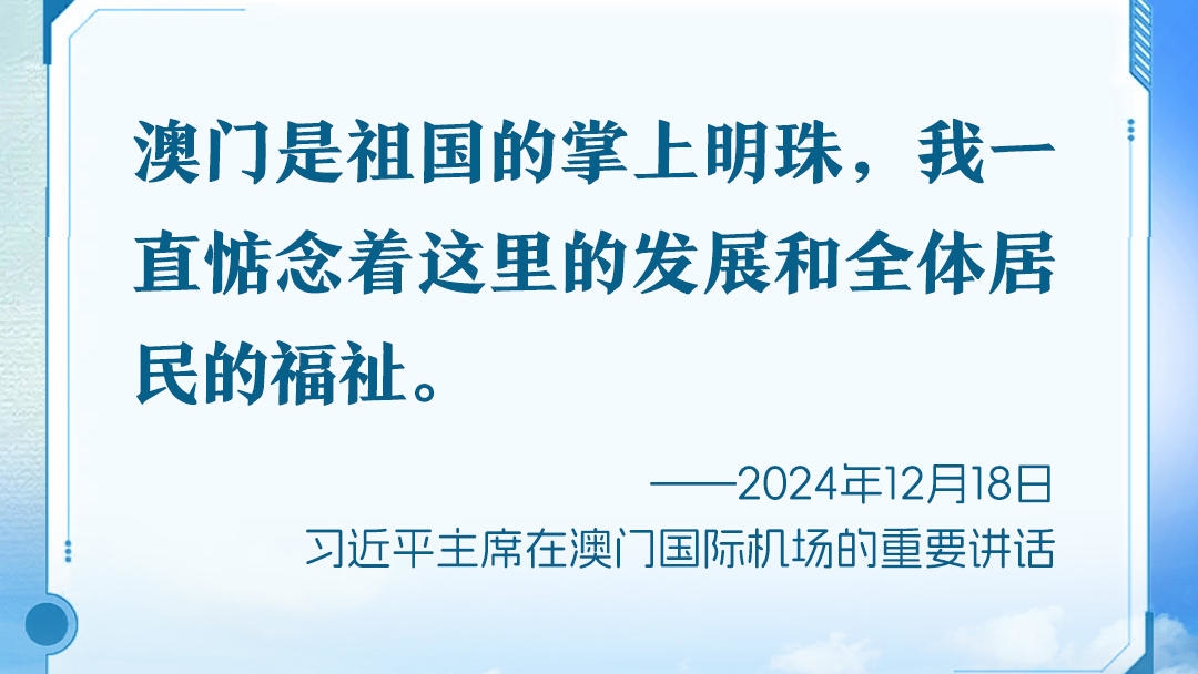 2024年12月19日,习近平总书记来到横琴粤澳深度合作区考察,他指出,一定要牢记开发横琴的初心就是为了澳门经济适度多元发展。要坚定落实规划,保持战略定力,坚持久久为功。【详细】