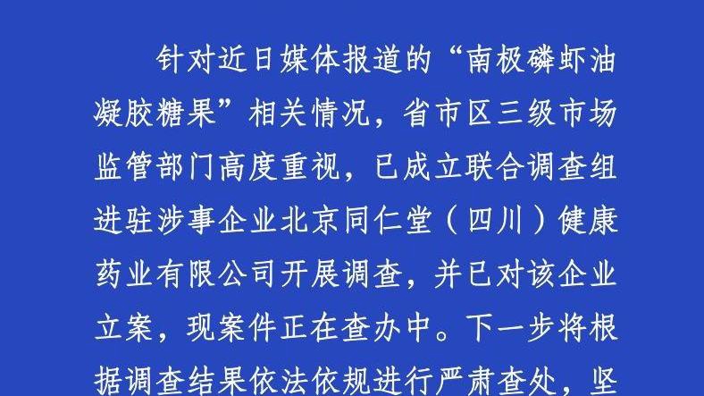 官方通报“南极磷虾油”事件:已成立联合调查组