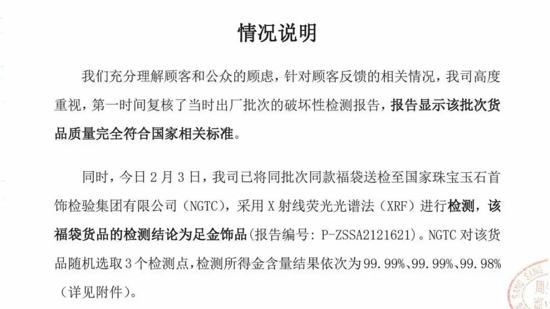 今日晚间,周生生官方微博再次发布情况说明。【详细】