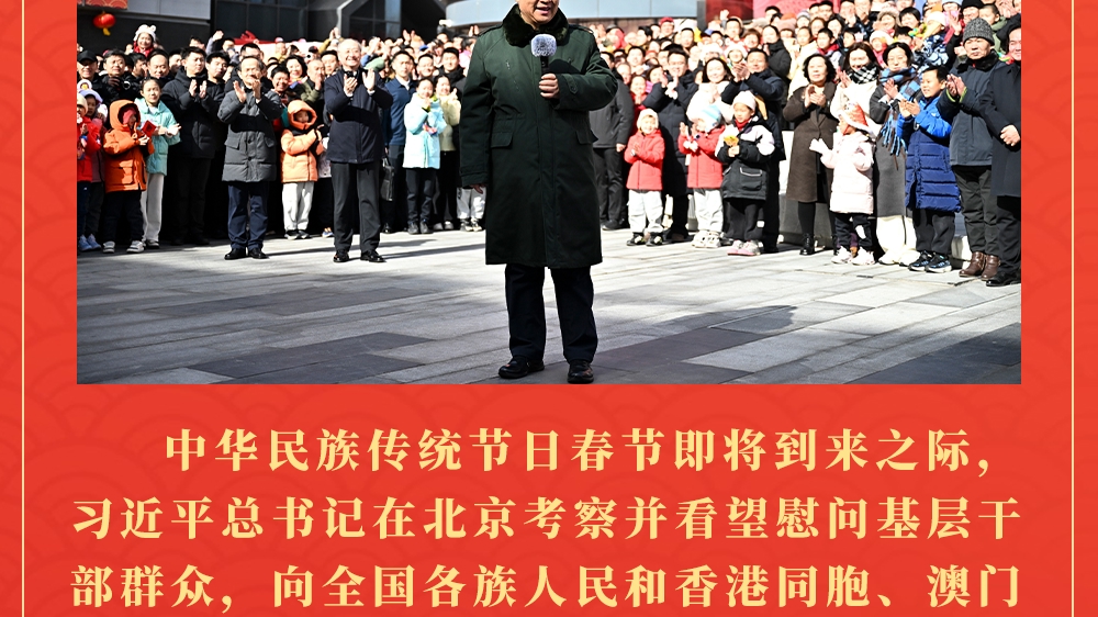中华民族传统节日春节即将到来之际,中共中央总书记、国家主席、中央军委主席习近平在北京考察并看望慰问基层干部群众,向全国各族人民和香港同胞、澳门同胞、台湾同胞、海外侨胞拜年!【详细】