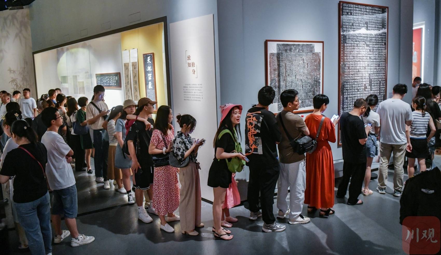 端午假期成都博物馆“汉字中国”特展持续火爆,游客排队2小时看赵孟頫临《兰亭序》。四川在线记者 向宇 摄
