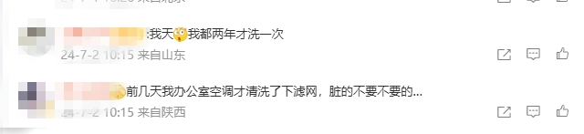 也有网友表示,自家空调半年清洗一次,用着放心。