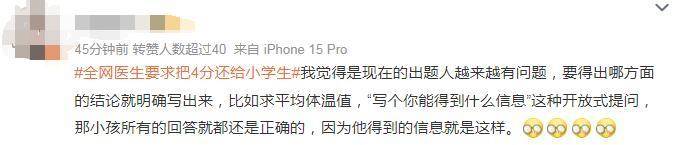 还有医生为小学生错题“联名上书”,表示对“病人”进行了会诊,“孩子没说错,请把这4分还给他。”