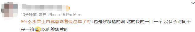 这个话题下网友讨论积极,纷纷在线“投票”,目前来看,砂糖橘呼声很高。有网友说砂糖橘就是年味,是过年必吃榜。砂糖橘小巧玲珑,一口一个。砂糖橘含有β-胡萝卜素,一次性吃太多脸会变黄,这也没阻止大家对它的爱,有些家庭一买就是一筐↓↓↓