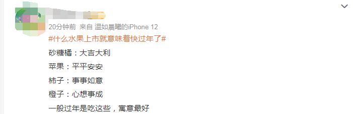 春节的脚步声越来越近了,年味渐浓,不少家庭已经开始准备年货。各种水果也是过年的必备品,你家过年常买什么水果呢?今天,#什么水果上市就意味着快过年了#冲上微博热搜。
