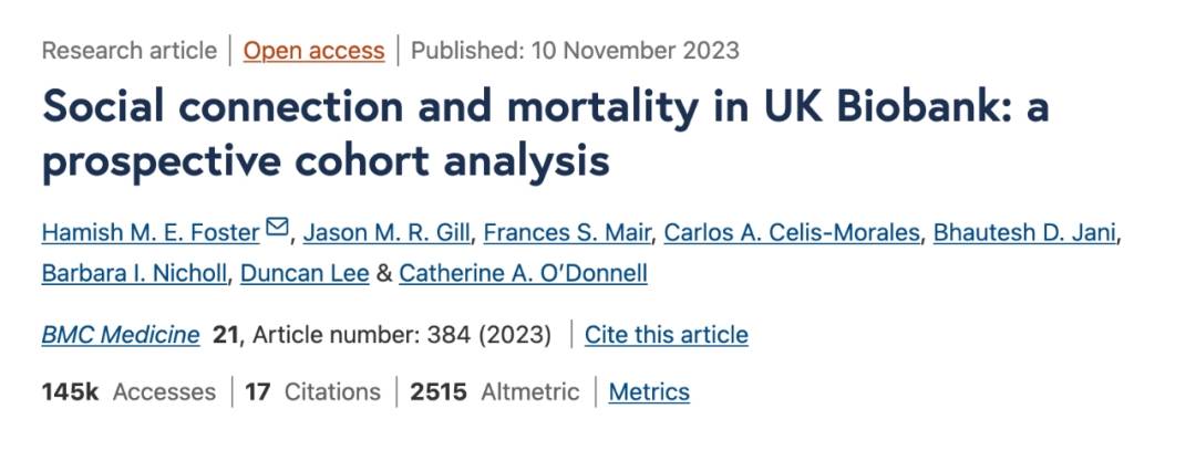 据媒体报道,英国一项长达12年、覆盖46万人的研究发现:长期独居、缺乏社交的人,早逝风险最高增加 77%,相当于每天抽一包烟对身体健康的影响。