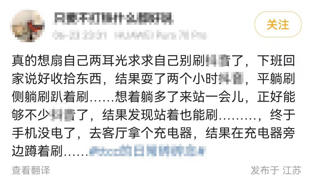 比如,侧躺玩手机时,双眼看手机的距离是不一样的,下方那只眼睛离手机更近,更易导致疲劳、眼睫状肌痉挛,进而让近视发展更快,还可能诱发斜视,斜视患者看东西会模糊重影,就会不自觉通过偏头、侧脸等动作“代偿”,长期以往还会影响肩颈健康。