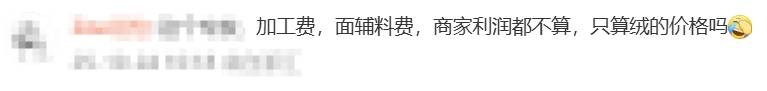 但也有网友对此不买账,认为一件羽绒服的成本不止绒本身。