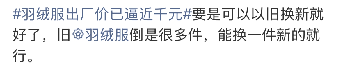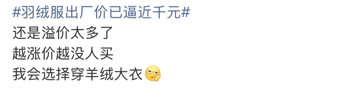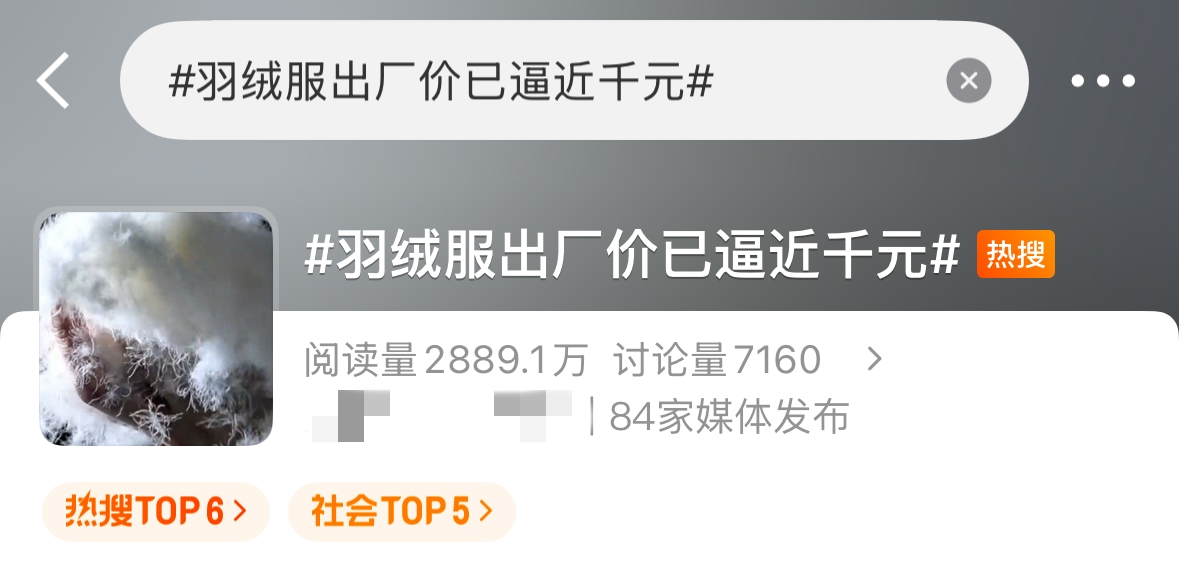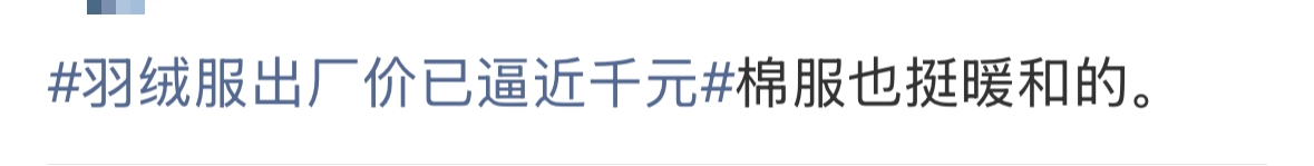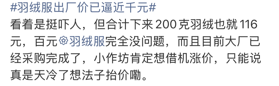 今天,#羽绒服出厂价已逼近千元#的话题登上热搜。