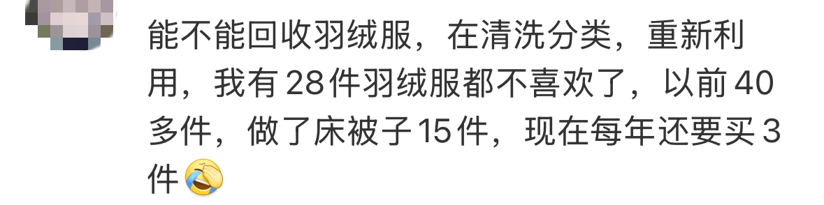 也有网友提出羽绒服也可以回收利用、以旧换新: