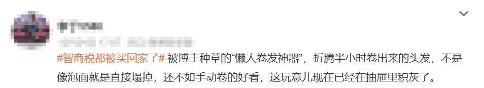 强磁铁能让燃气表走得慢?冲着“七天瘦十斤”买的代餐粉,喝起来像糊墙的腻子?跟风买的“懒人卷发神器”折腾半小时弄个“鸡窝头”……近日,不断有网友吐槽自己买的无用商品,#智商税都被买回家了#冲上热搜话题榜。
