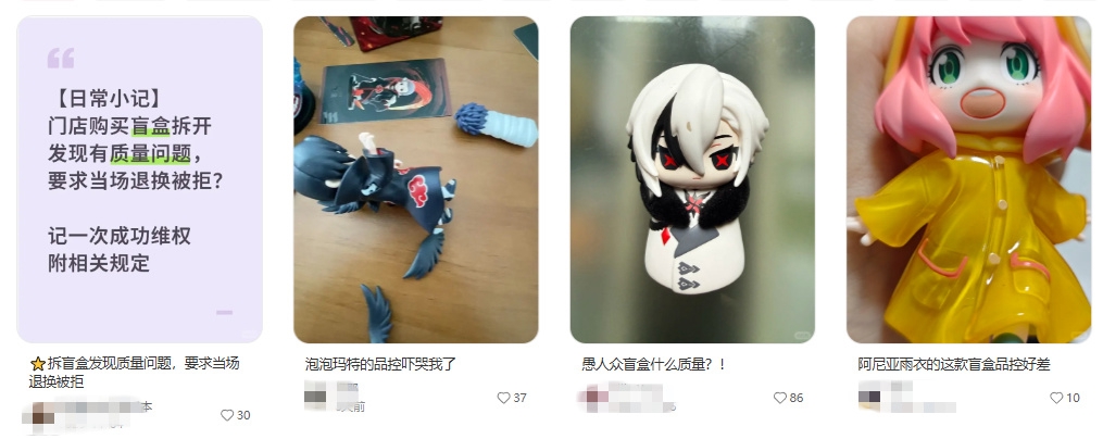 在社交平台搜索“盲盒质量”后网帖截图