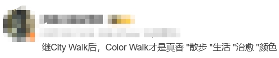 “color walk”是继“city walk”后的又一种新型体验生活的方式,成为年轻人缓解日常焦虑、调节情绪的新选择。其方法非常简单:出门前,在心里选定一个颜色,带着这个目标走进日常街道,行走中主动寻找、捕捉所有带有该颜色的事物,完成一场情绪治愈之旅。