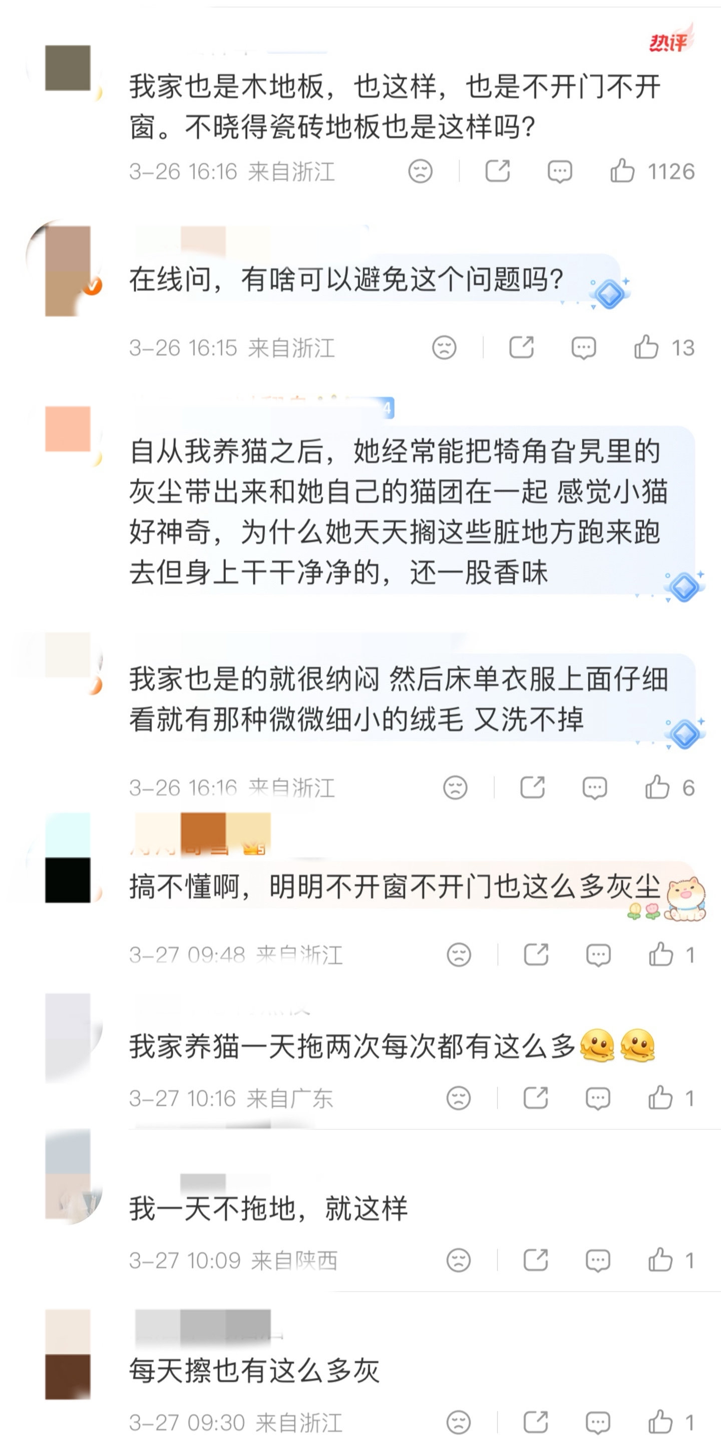 不少网友表示深有同感,“一天不拖地就这样”“没开窗不开门也这么多灰”“明明刚打扫完,一摸桌面又一层”……