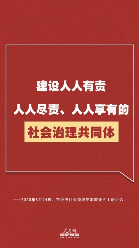 ·要完善共建共治共享的社会治理制度,实现政府治理同社会调节、居民自治良性互动,建设人人有责、人人尽责、人人享有的社会治理共同体。