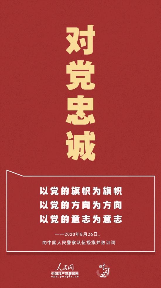 对党忠诚——“坚定的理想信念是政法队伍的政治灵魂。”红色,是中国人民警察警旗的主色调,也是忠诚的颜色。对党忠诚、听党指挥,是人民警察队伍代代相传的政治基因。新时代,人民警察队伍要坚持党的绝对领导,增强“四个意识”、坚定“四个自信”、做到“两个维护”,确保绝对忠诚、绝对纯洁、绝对可靠。