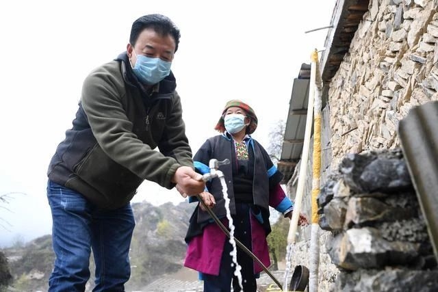 ▲甘肃省甘南藏族自治州舟曲县果耶镇勒阿村第一书记张金利在村民家检查自来水管。