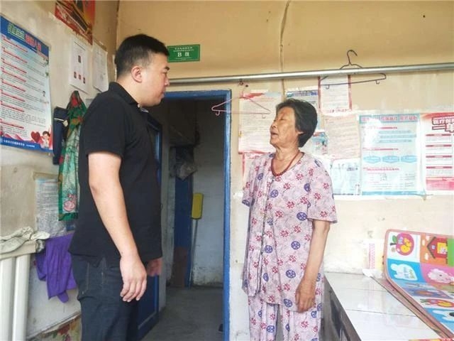 ▲吉林省农安县合隆镇烧锅岭村第一书记祁志刚看望贫困户谷凤英。