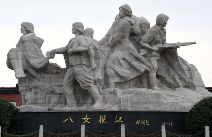 她们是东北抗日联军第5军妇女团的政治指导员冷云,班长胡秀芝、杨贵珍,战士郭桂琴、黄桂清、王惠民、李凤善和被服厂厂长安顺福。1938年10月,该部在牡丹江地区乌斯浑河渡口与日伪军千余人遭遇。已行至河边准备渡河的妇女团8名成员,为掩护大部队突围,毅然放弃渡河,在冷云率领下,分成3个战斗小组,与日伪军展开激战。她们主动吸引日伪军火力,使部队主力得以迅速摆脱敌人的攻击,但她们却被敌人围困于河边。在背水作战至弹尽的情况下,面对日伪军逼降,女战士们誓死不屈。她们毁掉枪支,挽臂涉入乌斯浑河,高唱着《国际歌》,集体沉江,壮烈殉国。牺牲时,她们年龄最大的冷云23岁,最小的王惠民才13岁。