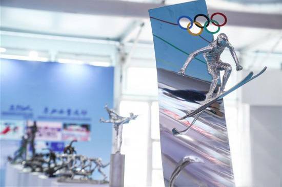 △北京奥林匹克公园中轴景观大道室外展馆A馆内陈列的冬季运动雕塑