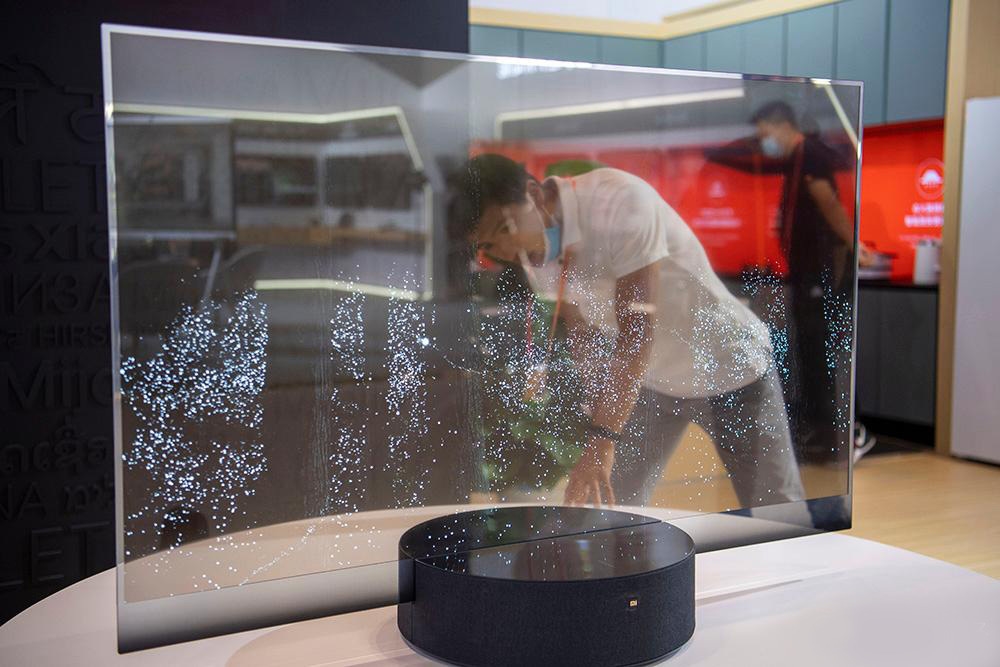 △2020年服贸会综合展区,参观者正在感受透明电视。