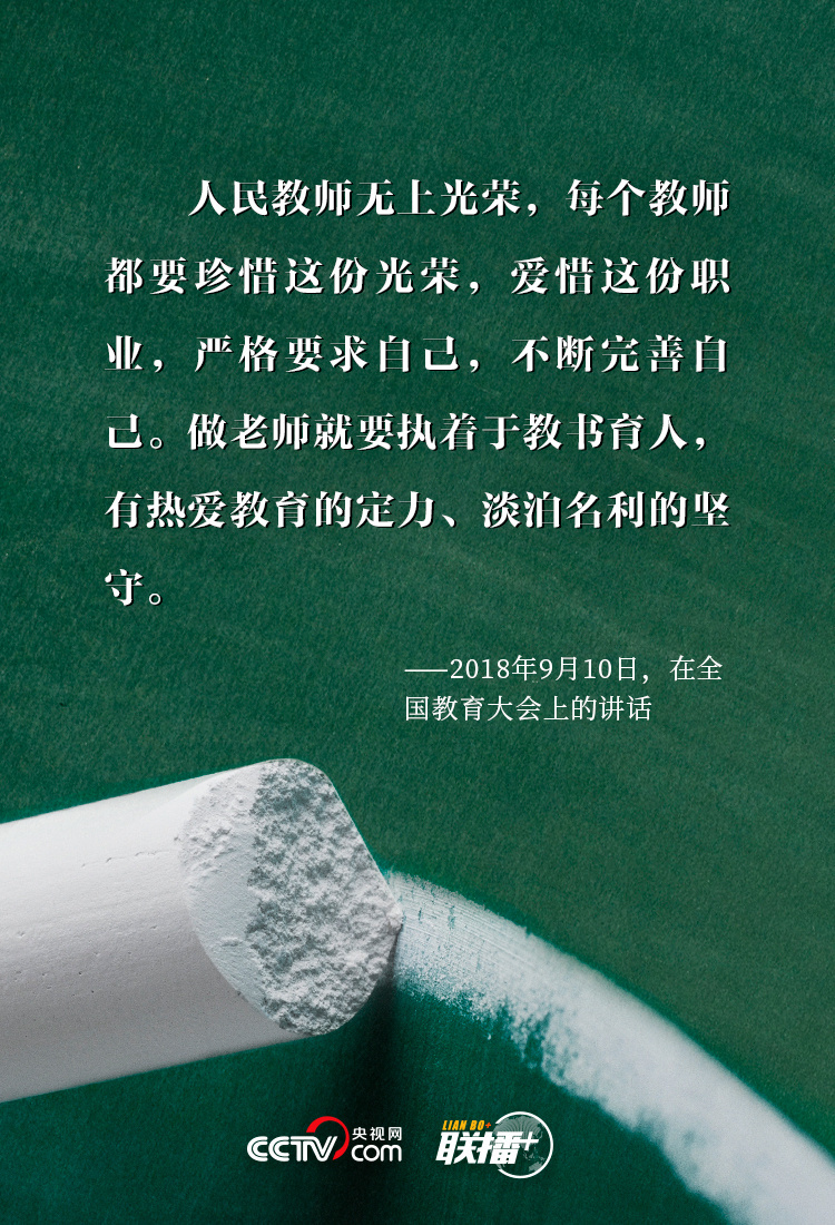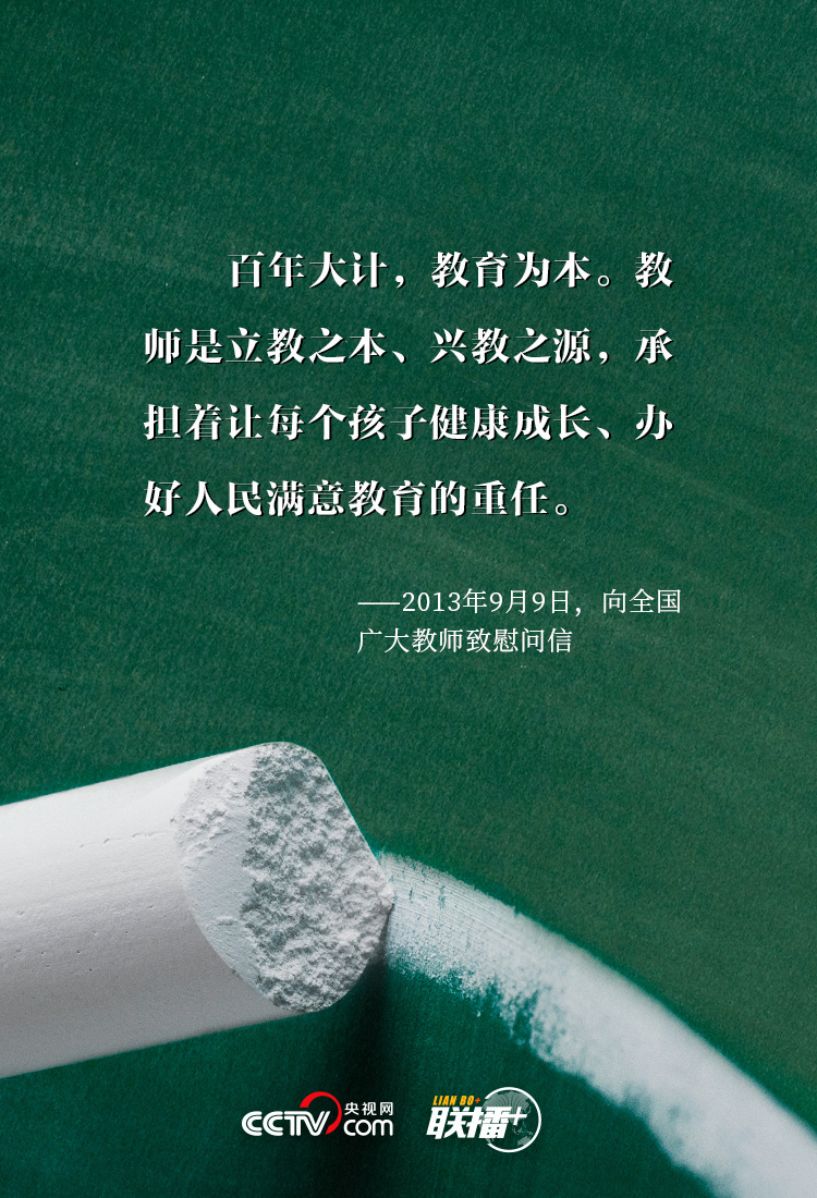 “三寸粉笔,三尺讲台系国运;一颗丹心,一生秉烛铸民魂。”习近平总书记一直以来高度重视中国教育发展和教师工作,身体力行倡导尊师重教,深刻指出“好老师”对于个人、集体乃至民族复兴的重要意义,深情表达对中华民族“梦之队”筑梦人的殷殷厚望。央视网《联播+》特梳理,与您共同学习。