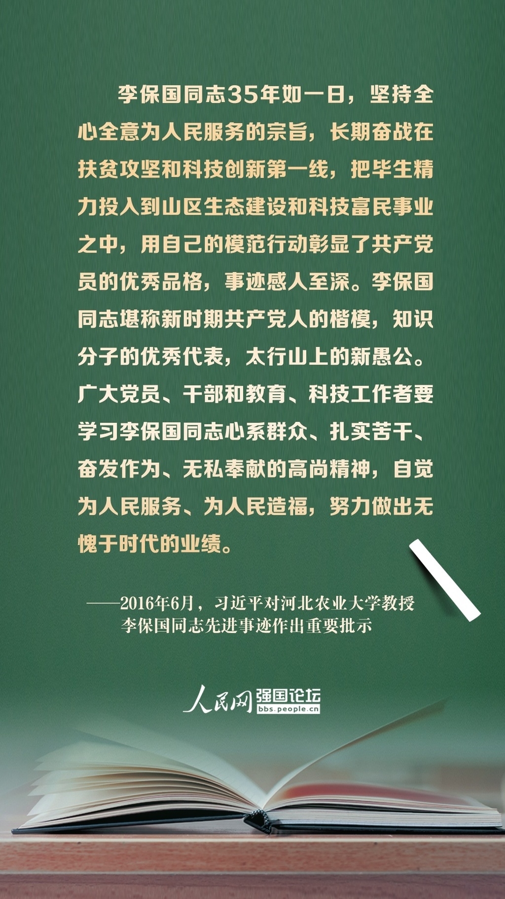 2016年12月7日,习近平在全国高校思想政治工作会议中强调,教师不能只做传授书本知识的教书匠,而要成为塑造学生品格、品行、品味的“大先生”。