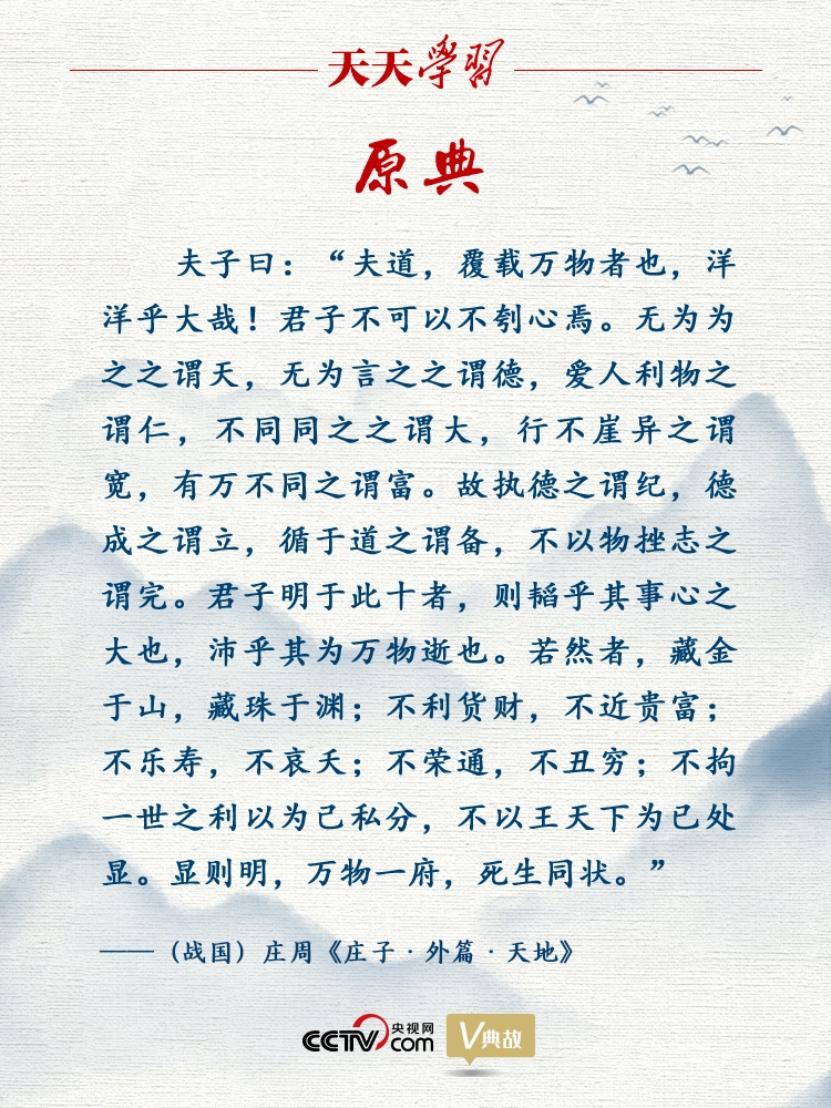 “仁”是儒家学说的思想核心,道家亦讲求“仁”,这是儒、道思想契合之处。但儒家所说的“仁”主要是对人而言,庄子的“齐物论”则将“仁”推及万物:“泛爱万物,天地一体也。”(《庄子·天下》)主张“爱人利物之谓仁”。把“仁”向更深层次、更宽领域拓展,不仅要“爱人”,而且还要“利物”。所谓“利物”,即要爱护自然界所有生命物质和非生命物质,充分体现了道家人与自然和谐、“天人合一”的思想。