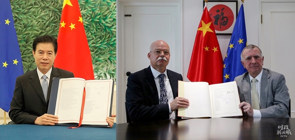 △中欧双方代表的签字(来源于欧盟驻华大使社交媒体)