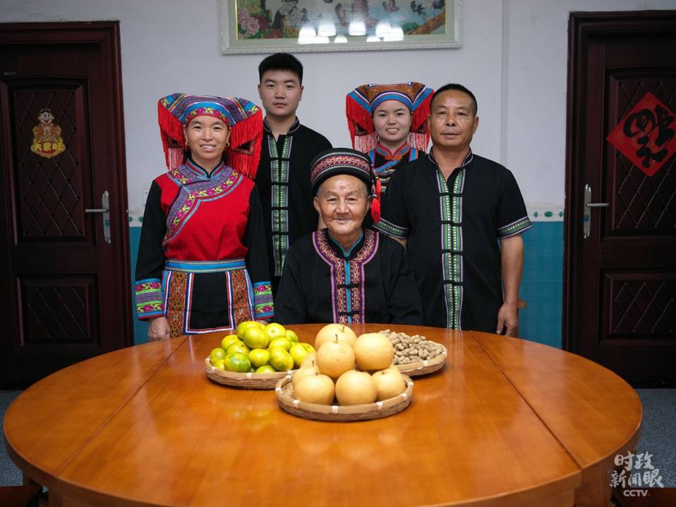 △朱中雄(中)一家当天拍的全家福。(总台央视记者彭汉明拍摄)
