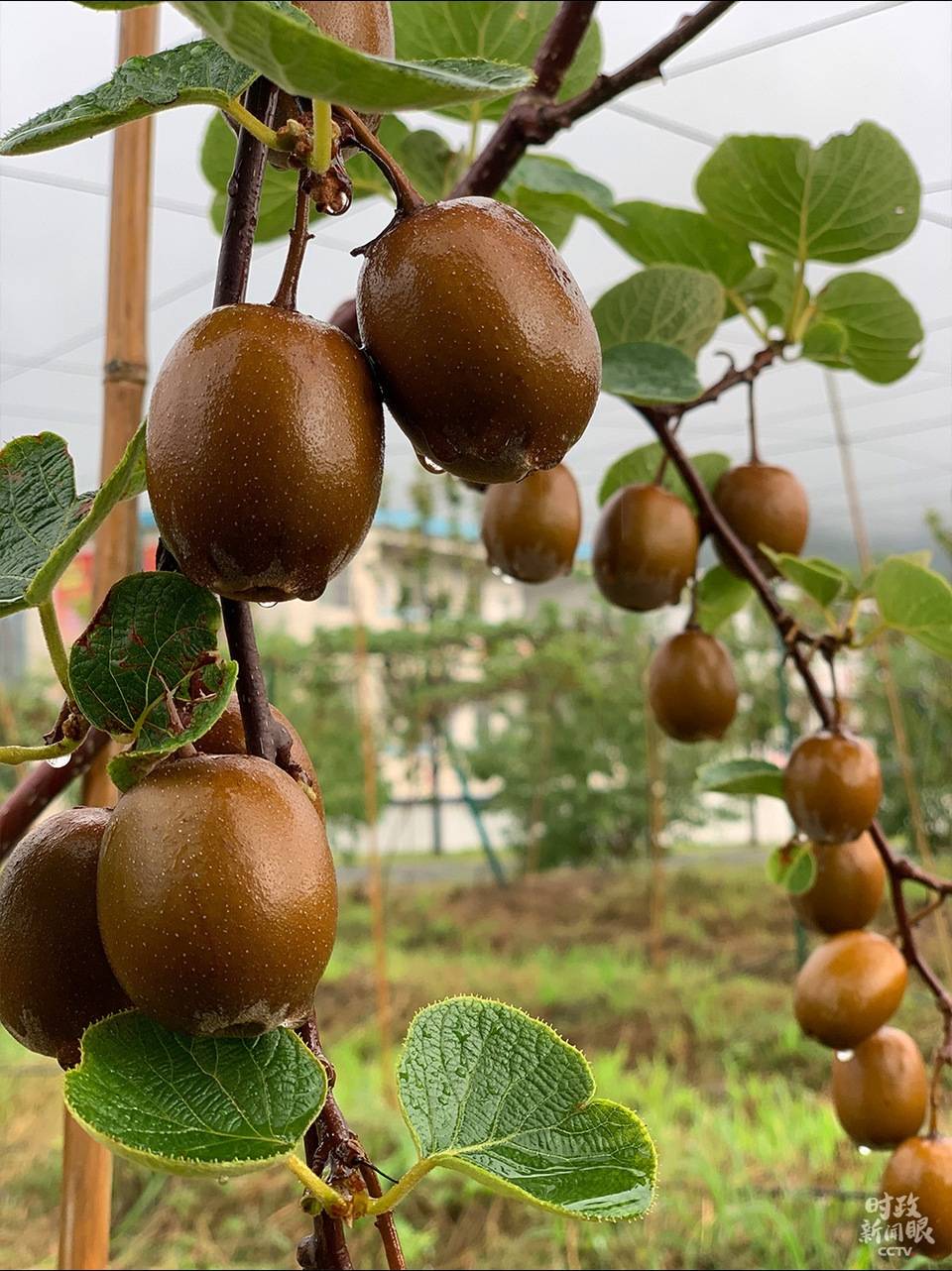 △示范基地种植的猕猴桃有翠香、金红等品种,共240亩,预计产量达2000斤/亩,产值200余万元。(总台央视记者段德文拍摄)