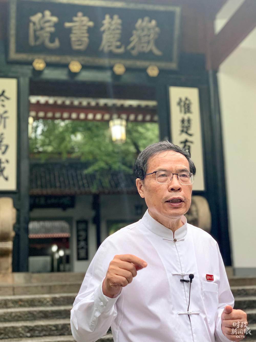 △当天给总书记作介绍的是曾任岳麓书院院长20多年的朱汉民教授。(总台央视记者卢心雨拍摄)