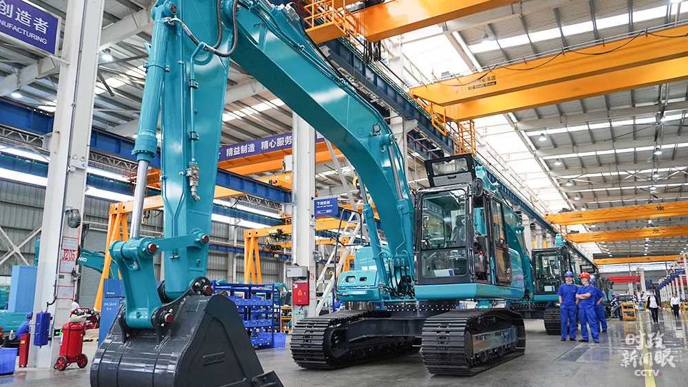 △山河智能生产车间组装的大型挖掘机,能适应多种复杂地形作业。(总台央视记者郭晓龙拍摄)
