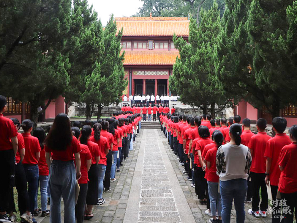 △岳麓书院2020级新生入学礼现场,142名新生齐聚大成殿前。(来源于岳麓书院官网)