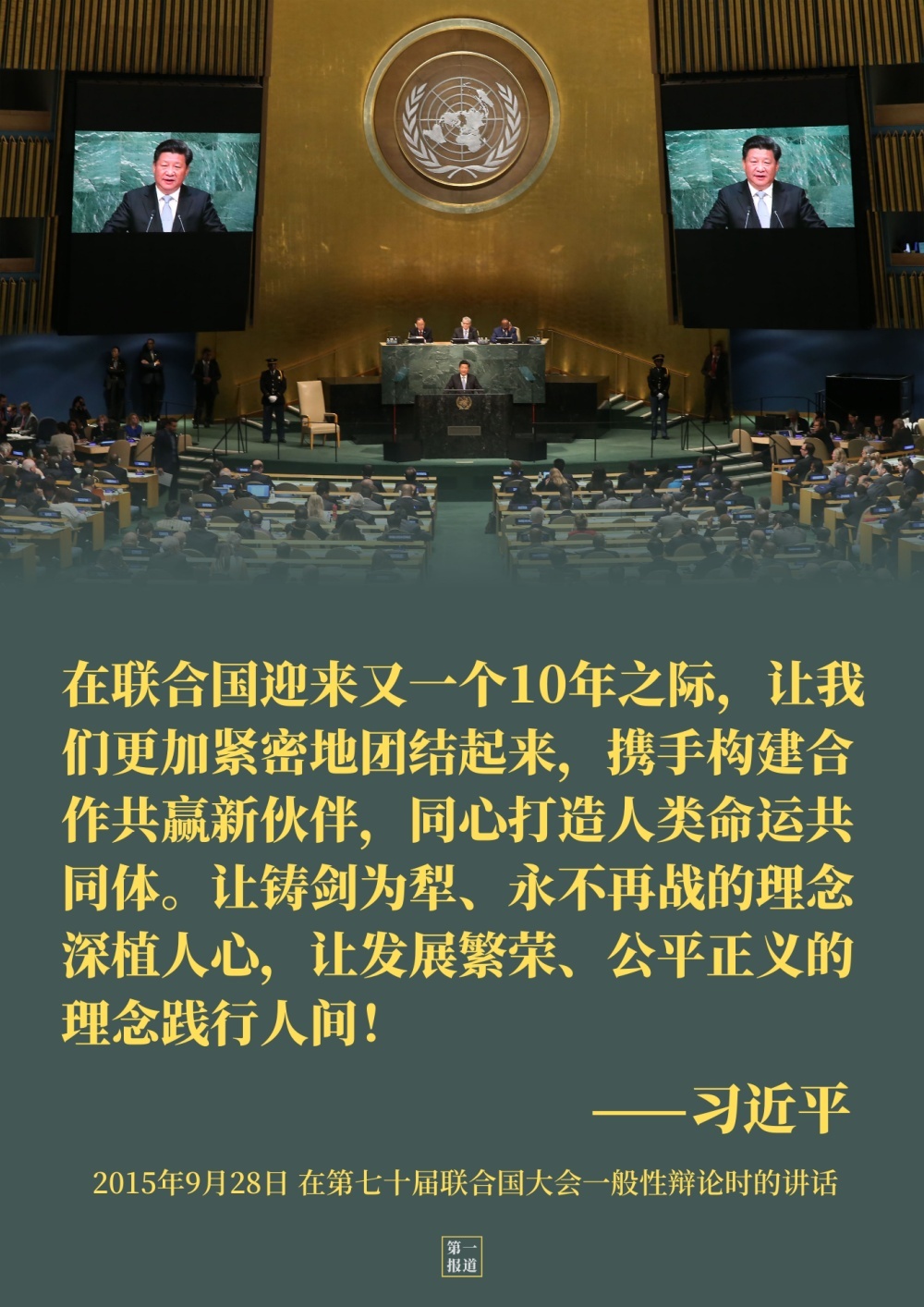 “第一报道”选取其中3个镜头,带您重温5年前习主席的“联合国时间”——