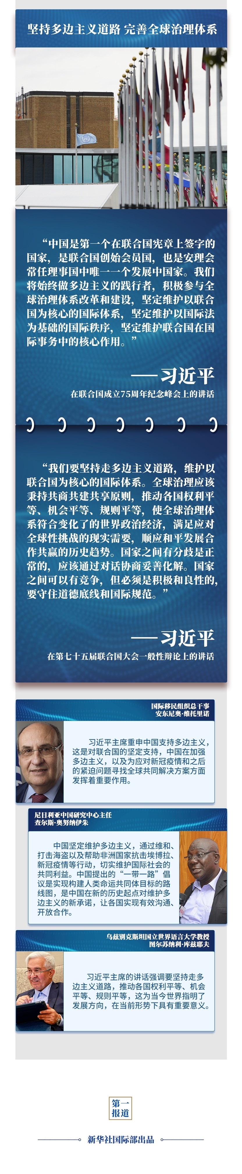 在联合国成立75周年之际,习主席通过视频方式,在联合国这一多边外交舞台阐述关于国际秩序和人类前途命运的中国主张,为国际社会应对全球性挑战、推动共同发展指明方向,为世界各国携手构建人类命运共同体、共创更加美好的未来注入信心和动力——