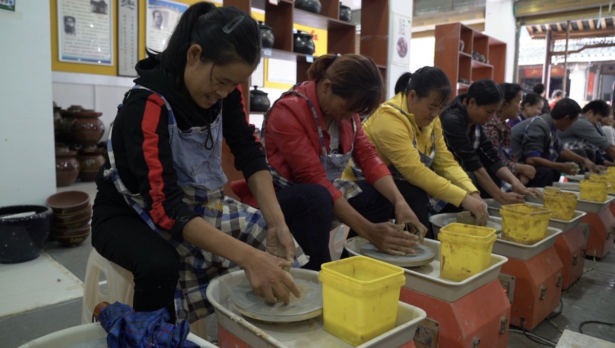 后来,母先才接受了当时的驻村第一书记周成军的建议,转变经营思路,由主营生产日用陶器改为陶器制作体验。转型后,前来体验陶艺制作的游客络绎不绝。