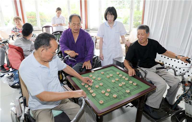 河北省唐山市截瘫疗养院的住院者在下棋(2019年7月25日摄)。新华社记者 赵鸿宇 摄