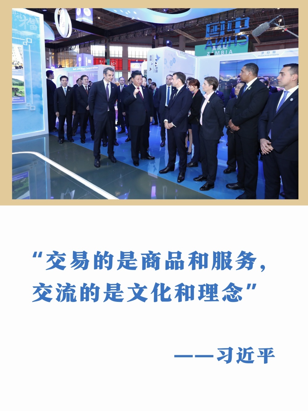 展厅里展品各具特色。习主席同外方领导人边走边看,不时驻足体验,留下一个个经典瞬间,成为中国与世界开放合作、共享未来的生动见证——