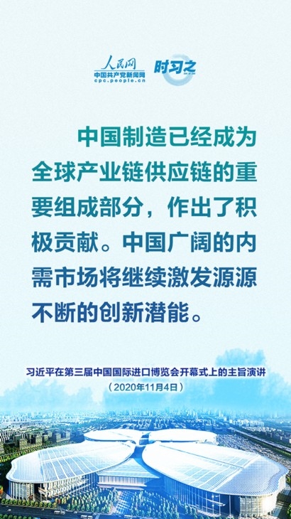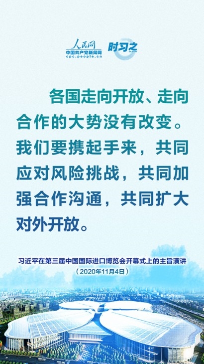 第三届中国国际进口博览会开幕式于11月4日晚在上海举行,国家主席习近平以视频方式发表主旨演讲。人民网·中国共产党新闻网“时习之”栏目制作了10张海报,带您一起回顾习近平这些掷地有声的话语。