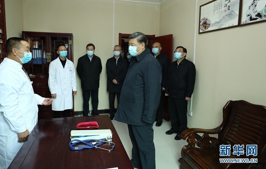 今年2月10日下午,总书记来到北京地坛医院,察看新冠肺炎感染者住院诊疗情况,通过视频连线武汉市新冠肺炎患者收治医院,听取中央指导组、湖北指挥部有关情况汇报,慰问奋战在一线的医务工作者。