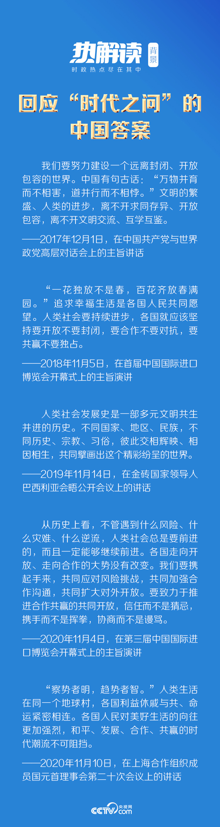 其实,针对“世界怎么了,我们怎么办”的时代之问,习近平主席多次在国际场合给出中国答案。