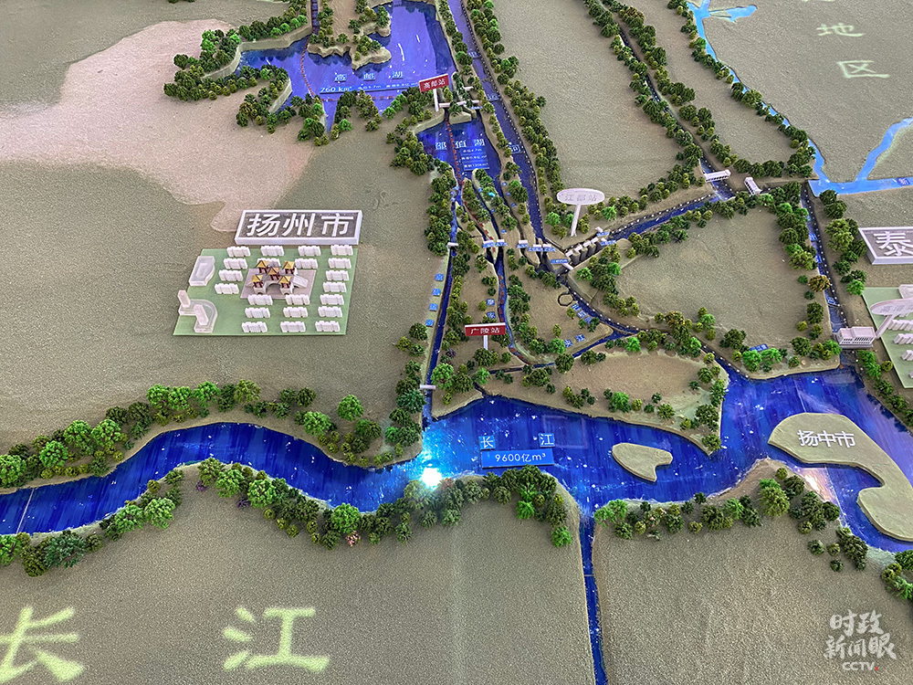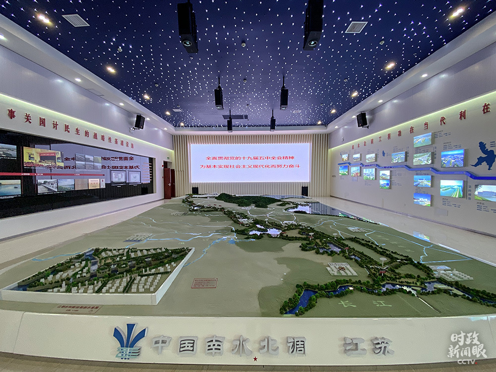 △江都水利枢纽展厅中的“南水北调东线工程”沙盘展示(总台央视记者彭汉明拍摄)