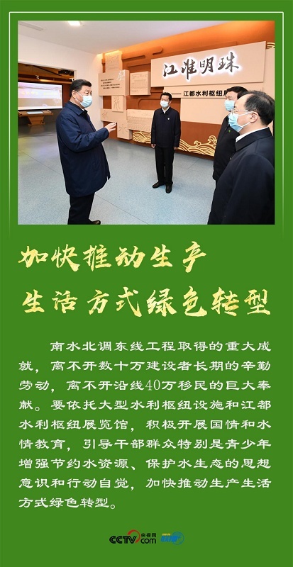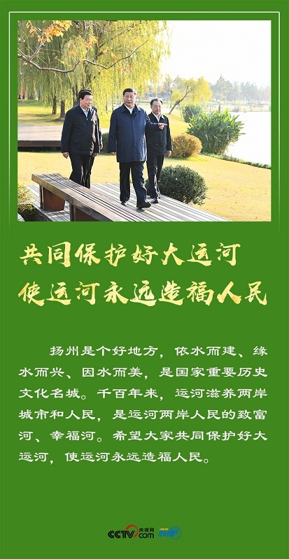 从“江海门户”南通市五山地区滨江片区,到扬州市运河三湾生态文化公园,再到南水北调东线工程源头江都水利枢纽,总书记考察长江岸线环境综合治理,了解大运河沿线环境整治,调研南水北调东线工程规划建设和江都水利枢纽运行等情况。