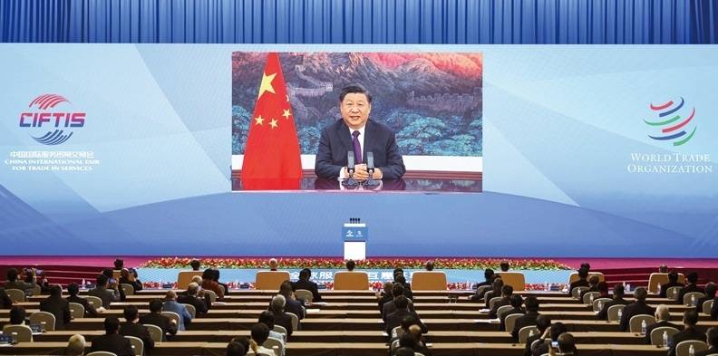 △2020年9月,习近平在2020年中国国际服务贸易交易会全球服务贸易峰会上致辞。