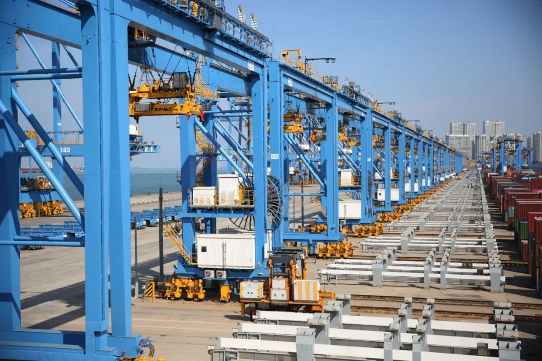△10月8日,位于山东自贸区青岛片区的山东港口青岛港全自动化码头集装箱堆场一派繁忙景象。