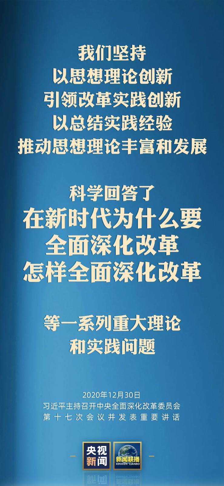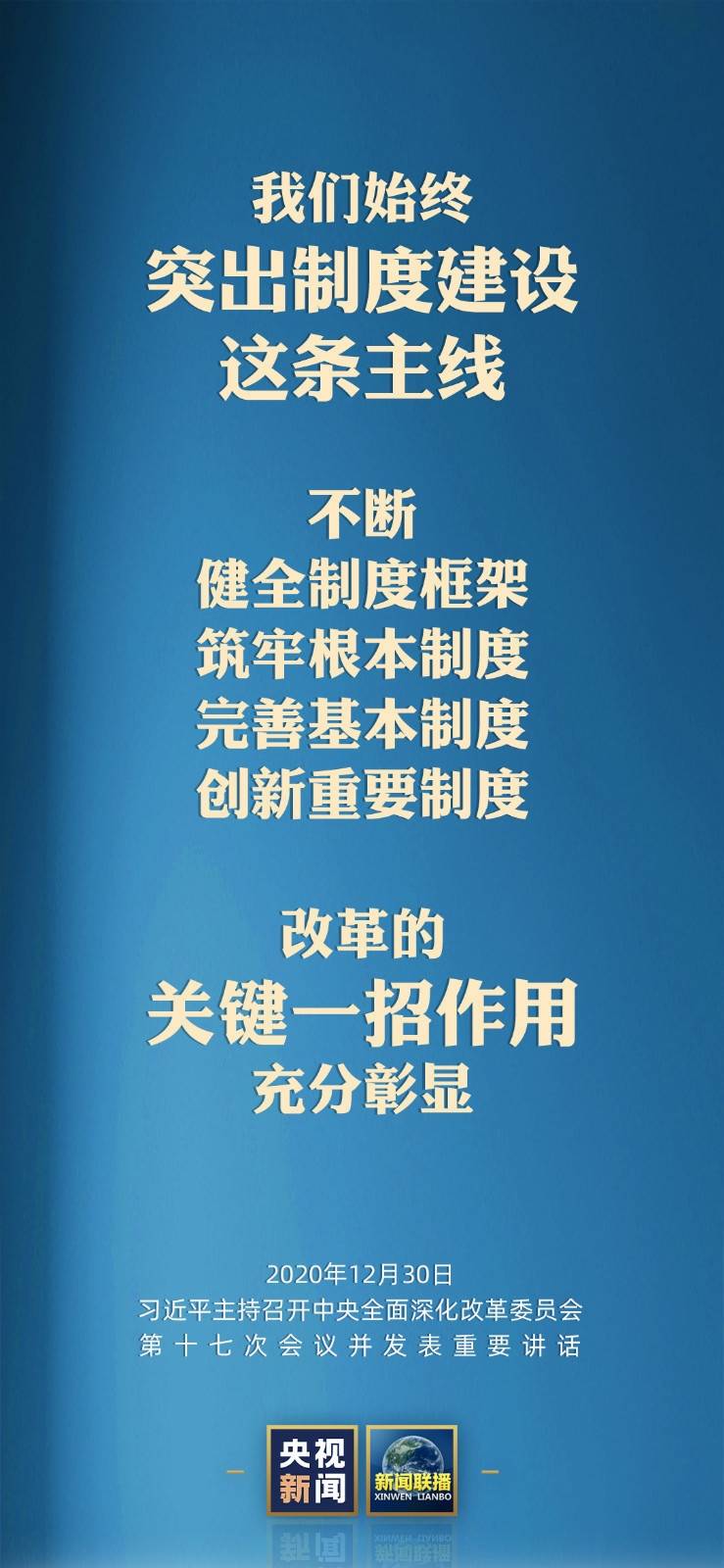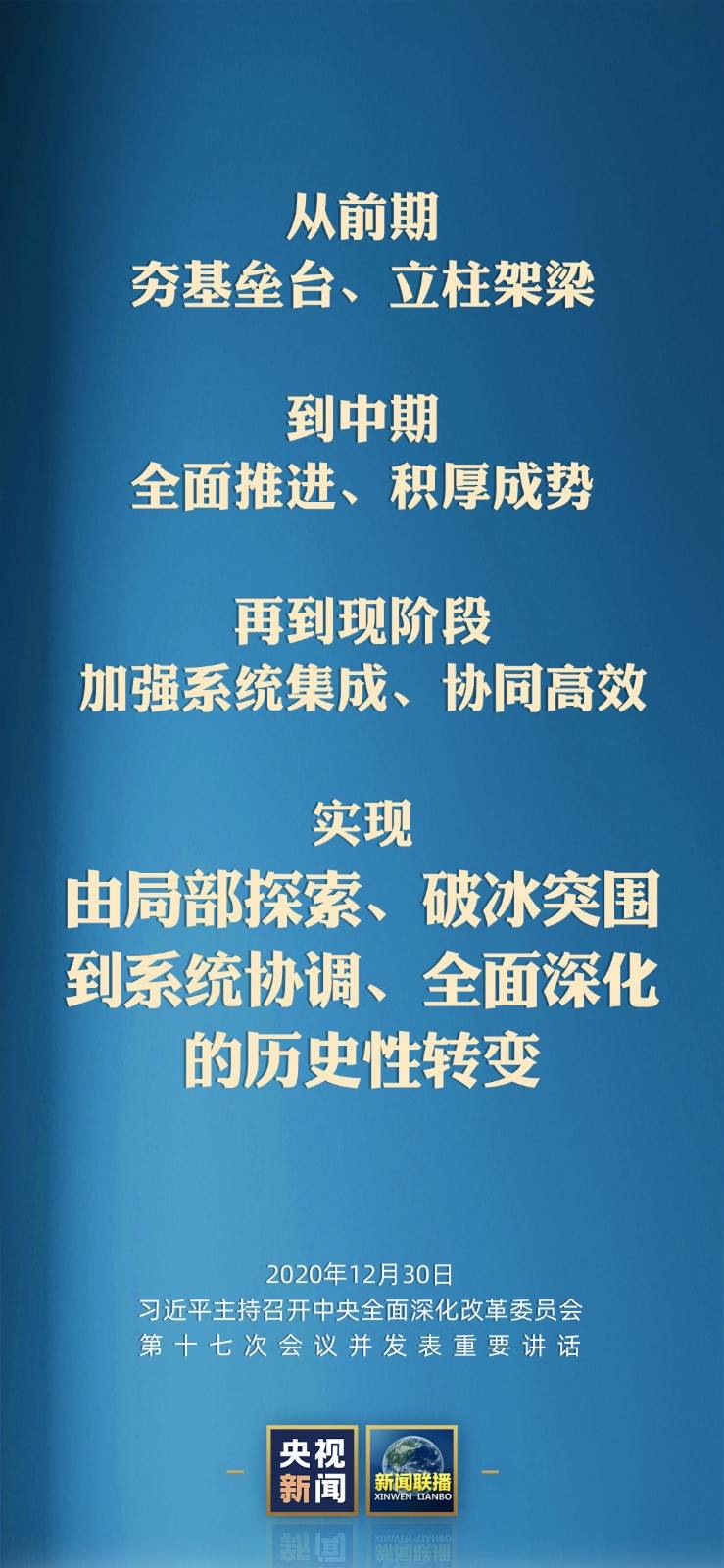 2020年12月30日,中共中央总书记、国家主席、中央军委主席、中央全面深化改革委员会主任习近平主持召开中央全面深化改革委员会第十七次会议并发表重要讲话。他强调,要坚定改革信心,汇聚改革合力,再接再厉,锐意进取,推动新发展阶段改革取得更大突破、展现更大作为。来看梳理↓