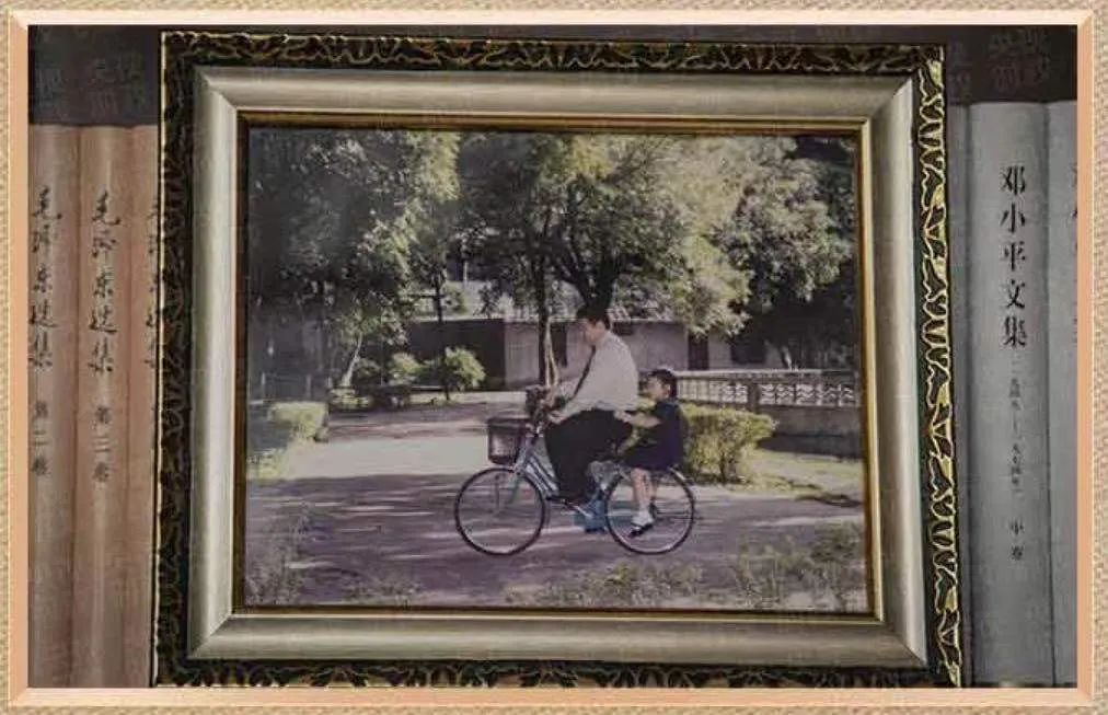 自2013年习近平第一次发表新年贺词以来,这张照片就一直出现在他的书架上。 这是他在福州工作时带女儿骑自行车的温馨时刻。
