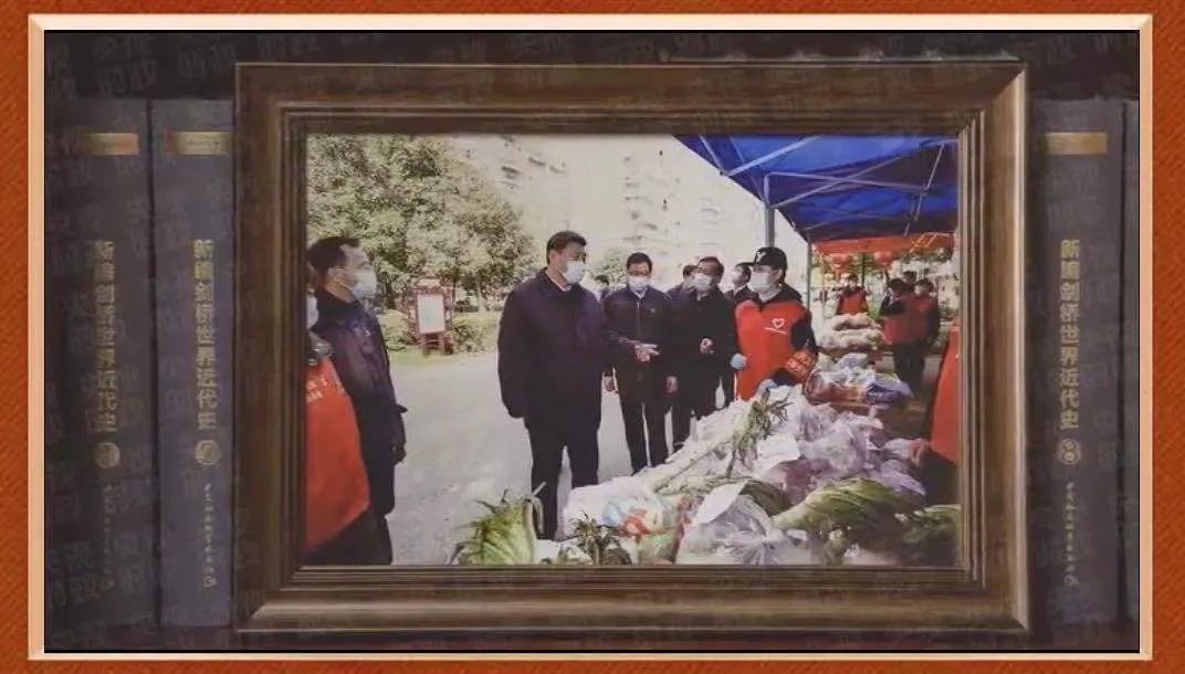 场景:在抗击新冠肺炎疫情的关键时刻,习近平赶赴“封城”47天的武汉。在社区生活物资集中配送点,习近平详细询问米面粮油和新鲜蔬菜水果等生活物资的采购供应情况,强调要千方百计保障好群众基本生活。