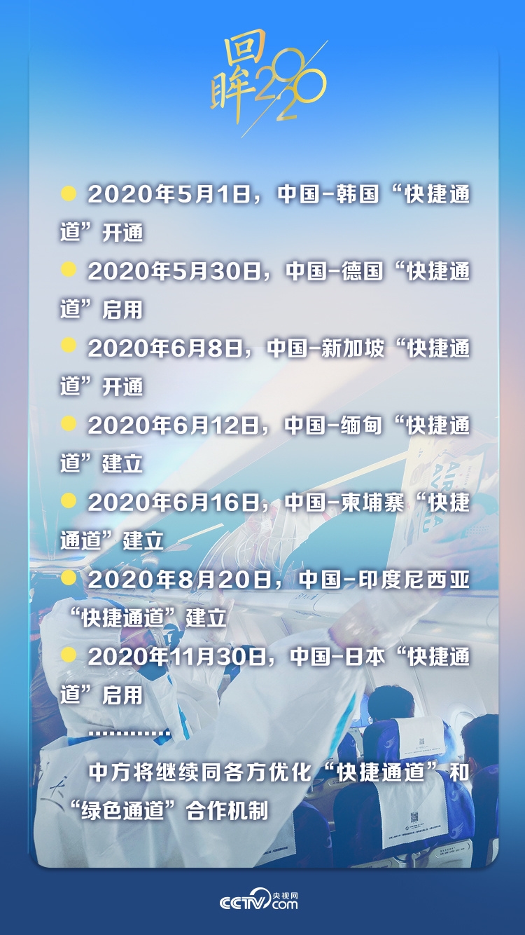 中国与韩国之间的“快捷通道”于2020年5月1日率先实施,随后又与德国、新加坡、柬埔寨、印度尼西亚、日本等国陆续开通。同年7月底,中国将“快捷通道”适用范围进一步扩大。据统计,截至2020年12月,已有来自60多个国家的商务、技术等各类人员通过“快捷通道”来华。